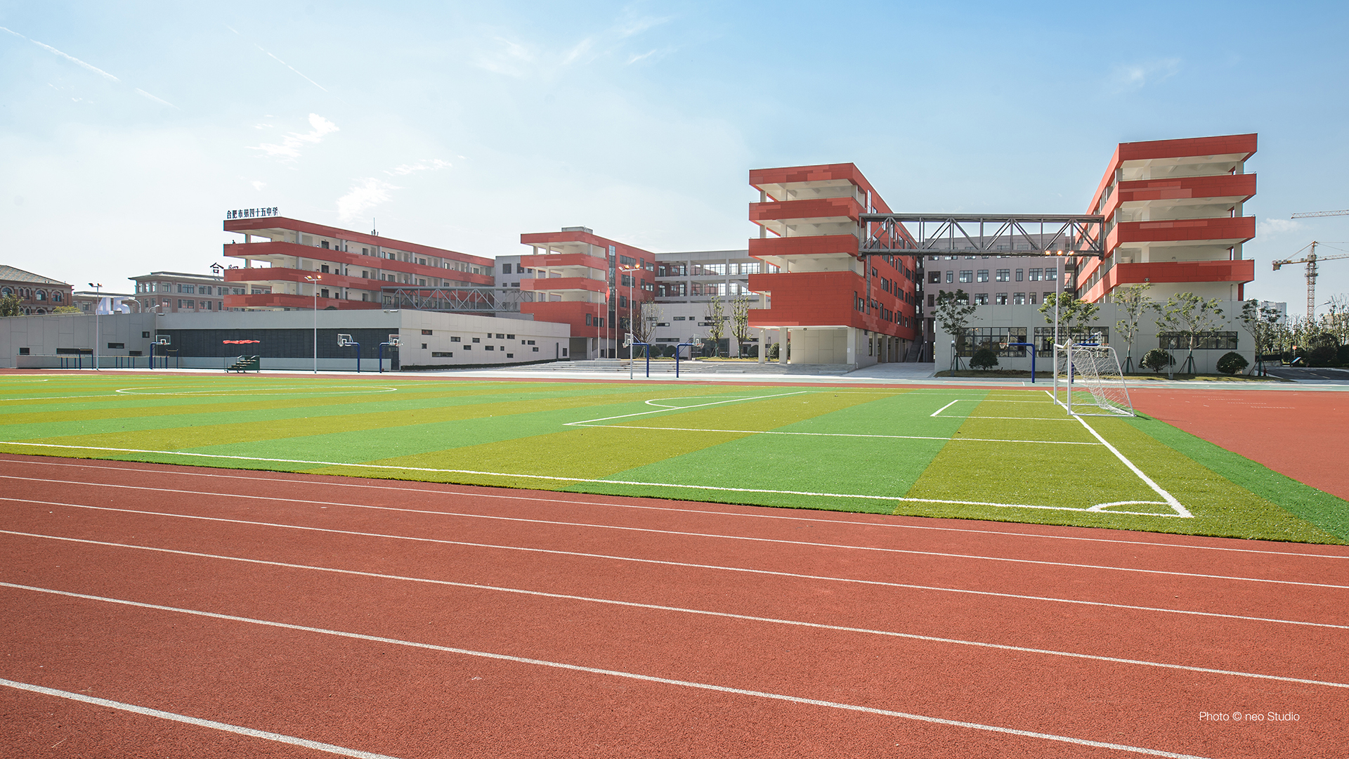 The Hefei No.45 Middle School is situated in the center of the “Forest Park” neighborhood, a northern urban extension to the City of Hefei, in Anhui Province, China. The 3.9-hectare site occupies an entire block within the city, located at the corner of Guzhen Road and Lanmei Road.