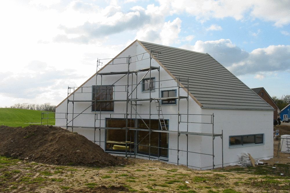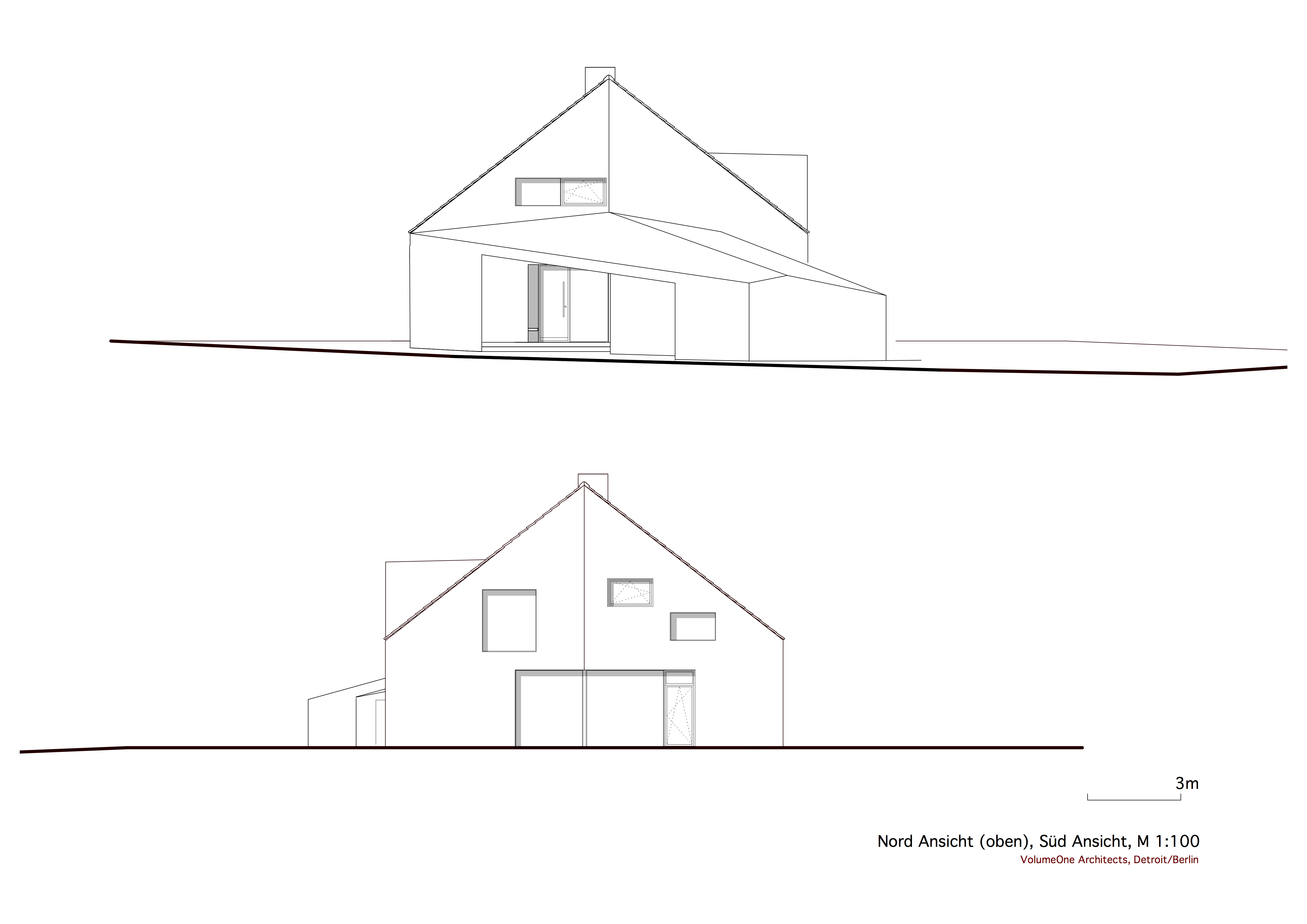 The owners’ desire to have a modern building, which is environmentally responsible as well as their intriguing site on the perimeter of a small village, led to a custom tailored house with a view into the pastoral landscape. While the design honors the traditions of North-German constructions, the modest 1,750 sq ft house was realized with a distinct identity. The angled geometry mediates between the view, the relationship of interior and exterior spaces and the proximity of neighboring buildings.