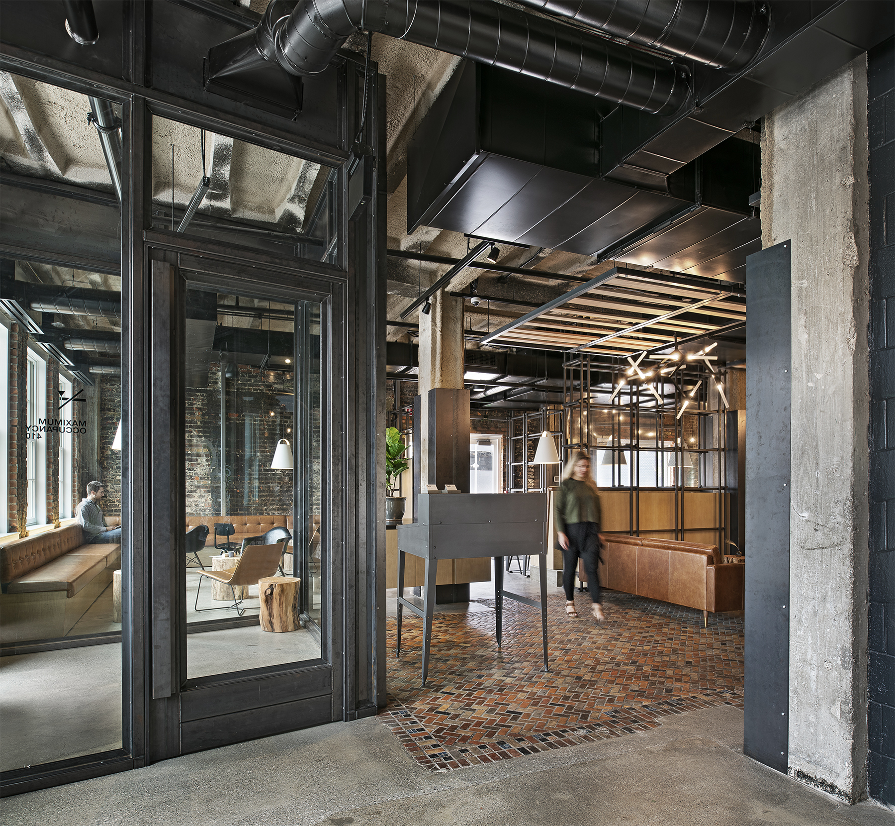 Smith & Co. is a restaurant located on the ground floor of the former Owosso Casket Company Building of 1917 and is situated within Detroit’s Midtown Selden Innovation Corridor. The design philosophy for the restaurant has been inspired by the characteristics of Northern Michigan’s landscape. The design of the 7,700 sqft dining space not only focuses on the culinary philosophy of a delicate and refined small plate menu but also incorporates the history of the building. The concrete and brick interior of the original structure has been exposed and certain original items, such as the garage doors and some pieces of steel furniture are reminiscent of the last use as the “Smith Welding Supply Company”. New untreated and raw steel as well as natural wood and leather throughout the space pose a sharp contrast against the textures of the existing brick walls, partially tiled floor, as well as the concrete ceiling and columns. The juxtaposition of the old and the new not only narrates the history of Midtown Detroit’s manufacturing past but also reflect the recent vibrant changes in the cultural transformation in the area.